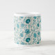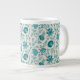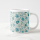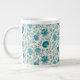 Caneca De Café Grande Jacobean Floral Pattern Teals on Cream