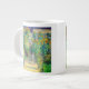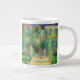 Café Mug com a pintura a óleo de Claude Monet O Jardim do Artista em Vétheuil (1880). Os girassóis e outras lindas flores azuis e vermelhas fazem um percurso no jardim onde as crianças estão dando um passeio agradável. Um presente de excelente para fãs do impressionismo e da arte francesa.