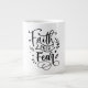 Jumbo Alguns dias, uma xícara de joe de tamanho normal simplesmente não vai funcionar. Quando precisar de uma dose extra de cafeína, pegue a sua caneca de café extragrande de Zazzle. Vai acomodar um cheio de 20 onças de Venti. Perfeito para sopa, cereal, sorvete ou chili também! Esta caneca gigante apresenta uma alça em forma de C para um corte confortável. Dimensões: Altura: 4,5" Diâmetro: 3,9" Capacidade: 20 onças de micro-ondas e lava-louças Forte, de cerâmica Cumpre ou excede os requisitos do FDA para a segurança das comidas e bebidas Impressos a pedido em Reno, NV Designer Dica: Para garantir o impressão de mais alta qualidade, note que a área de design personalizável deste produto mede 4" alto x 10,5"