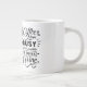 Jumbo Alguns dias, uma xícara de joe de tamanho normal simplesmente não vai funcionar. Quando precisar de uma dose extra de cafeína, pegue a sua caneca de café extragrande de Zazzle. Vai acomodar um cheio de 20 onças de Venti. Perfeito para sopa, cereal, sorvete ou chili também! Esta caneca gigante apresenta uma alça em forma de C para um corte confortável. Dimensões: Altura: 4,5" Diâmetro: 3,9" Capacidade: 20 onças de micro-ondas e lava-louças Forte, de cerâmica Cumprir ou exceder os requisitos do FDA para o Designer de Segurança de comidas e bebidas Dica: Para garantir o impressão de alta qualidade, note que a área de design personalizável deste produto mede 4" alto x 10,5" de largura