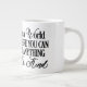 Jumbo Alguns dias, uma xícara de joe de tamanho normal simplesmente não vai funcionar. Quando precisar de uma dose extra de cafeína, pegue a sua caneca de café extragrande de Zazzle. Vai acomodar um cheio de 20 onças de Venti. Perfeito para sopa, cereal, sorvete ou chili também! Esta caneca gigante apresenta uma alça em forma de C para um corte confortável. Dimensões: Altura: 4,5" Diâmetro: 3,9" Capacidade: 20 onças de micro-ondas e lava-louças Forte, de cerâmica Cumprir ou exceder os requisitos do FDA para o Designer de Segurança de comidas e bebidas Dica: Para garantir o impressão de alta qualidade, note que a área de design personalizável deste produto mede 4" alto x 10,5" de largura