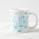 Escalas azuis de MERMAID e contornos de letras em um Jumbo Mug!