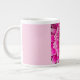 Uma flor rosa brilhante cobrir a frente desta caneca.