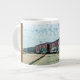 Um trem em uma ferrovia que atravessa cobrir a frente dessa caneca.