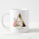Caneca De Café Grande Letra Monograma Dourado Vermelhidão Floral Púrpura