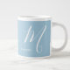 Caneca De Café Grande Letra Script M Soft Blue, Com Monogramas Artístico