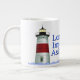 Faça uma pausa longa e relaxante do seu café, chá ou chocolate quente favorito com esta LIA JUMBO MUG de 20 oz, altura de 4,5" - com o logótipo colorido do farol da Lordship Melhorship Association