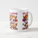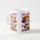 A funny and sarcastic design showcases a cute highland cow sitting with a beautiful white daisy and a to-go coffee cup. The cow, with big blue eyes and a serious expression, sports a lipstick kiss on his cheek and vibrant orange-and-white fur. The colorful text reads, "Life happens, coffee helps." This design is available on various products, making perfect gifts for coffee lovers.
