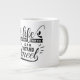 Jumbo Alguns dias, uma xícara de joe de tamanho normal simplesmente não vai funcionar. Quando precisar de uma dose extra de cafeína, pegue a sua caneca de café extragrande de Zazzle. Vai acomodar um cheio de 20 onças de Venti. Perfeito para sopa, cereal, sorvete ou chili também! Esta caneca gigante apresenta uma alça em forma de C para um corte confortável. Dimensões: Altura: 4,5" Diâmetro: 3,9" Capacidade: 20 onças de micro-ondas e lava-louças Forte, de cerâmica Cumprir ou exceder os requisitos do FDA para o Designer de Segurança de comidas e bebidas Dica: Para garantir o impressão de alta qualidade, note que a área de design personalizável deste produto mede 4" alto x 10,5" de largura