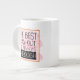 Jumbo Alguns dias, uma xícara de joe de tamanho normal simplesmente não vai funcionar. Quando precisar de uma dose extra de cafeína, pegue a sua caneca de café extragrande de Zazzle. Vai acomodar um cheio de 20 onças de Venti. Perfeito para sopa, cereal, sorvete ou chili também! Esta caneca gigante apresenta uma alça em forma de C para um corte confortável. Dimensões: Altura: 4,5" Diâmetro: 3,9" Capacidade: 20 onças de micro-ondas e lava-louças Forte, de cerâmica Cumprir ou exceder os requisitos do FDA para o Designer de Segurança de comidas e bebidas Dica: Para garantir o impressão de alta qualidade, note que a área de design personalizável deste produto mede 4" alto x 10,5" de largura