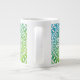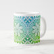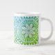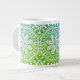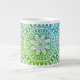 De tamanho generoso, esta caneca de 20 oz está coberta por um belo design mandala em tons de verde limão e azul. Arte original de Carol Kristensen.