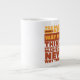 Jumbo Alguns dias, uma xícara de joe de tamanho normal simplesmente não vai funcionar. Quando precisar de uma dose extra de cafeína, pegue a sua caneca de café extragrande de Zazzle. Vai acomodar um cheio de 20 onças de Venti. Perfeito para sopa, cereal, sorvete ou chili também! Esta caneca gigante apresenta uma alça em forma de C para um corte confortável. Dimensões: Altura: 4,5" Diâmetro: 3,9" Capacidade: 20 onças
