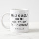 Uma caneca faz isso toda vez se você não tem certeza de qual presente obter para seu melhor ortodontista de sempre porque quem não ama uma xícara de chocolate ou café quente depois de um duro dia de trabalho. O texto diz "Trace-se para a melhor ortodontista do mundo" Você também pode mudar o texto da caneca ou simplesmente substituir a ocupação para qualquer profissão de sua escolha para fazer algo diferente e único. Adicionar um nome clicando no link "Personalizar" acima