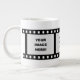 Um gráfico simples, preto e branco, de uma faixa de filmes cinematográficos. Basta adicionar suas próprias fotos nos espaços de modelo. Imagem disponível em vários presentes e produtos.