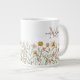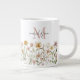 Caneca De Café Grande Monogramas Cores Aquáticas Flores Prateadas