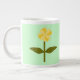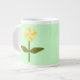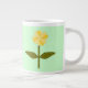 Esta caneca incrível apresenta uma imagem digital de uma margarida com um tronco verde com duas folhas verdes sobre ela e pétalas claras e amarelas escuras. Esta é uma design simples, mas bonita. O fundo é uma cor verde-grama pálida.