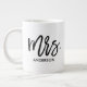 Dê a ela uma caneca personalizada de tamanho gigante com uma tipografia caprichosa "Sra." e seu sobrenome. Uma caneca correspondente também está disponível para o Sr.