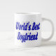 Mug com o melhor namorado do mundo em texto azul 3D. Mug disponível em vários estilos e cores.