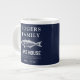 Marinho azul lago casaria caneca de café com imagem de truta rústica e tipografia serif ousada. Personalize esta design com seu nome de família e ano estabelecido. Personalize ainda mais este design selecionando o link "personalizar mais", se desejar.