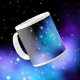 Caneca de café galáxia com uma abertura cósmica de nuvens espaciais nebulosas azuis e roxas e estrelas cintilantes. ♡ Idyllfire