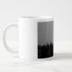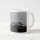 Foto em preto e branco do Monte Rainier. No primeiro plano estão linhas de árvores, e na base de Rainier estão colinas. O vulcão coberto de neve tem uma grande e interessante nuvem por trás. Para alguns, parece uma renderização antiga de uma nave espacial, para outros é uma forma humana. Como é a nuvem para você? Imagem Copyright ©2023 Kimberly J Tilley. zazzle.com/store/developingnature