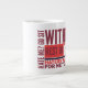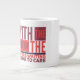 Jumbo Alguns dias, uma xícara de joe de tamanho normal simplesmente não vai funcionar. Quando precisar de uma dose extra de cafeína, pegue a sua caneca de café extragrande de Zazzle. Vai acomodar um cheio de 20 onças de Venti. Perfeito para sopa, cereal, sorvete ou chili também! Esta caneca gigante apresenta uma alça em forma de C para um corte confortável. Dimensões: Altura: 4,5" Diâmetro: 3,9" Capacidade: 20 onças de micro-ondas e lava-louças Forte, de cerâmica Cumpre ou excede os requisitos do FDA para a segurança das comidas e bebidas Impressos a pedido em Reno, NV Designer Dica: Para garantir o impressão de mais alta qualidade, note que a área de design personalizável deste produto mede 4" alto x 10,5"