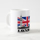"Londres" no fundo, Big Ben à esquerda e bandeira atrás