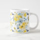Caneca De Café Grande Padrão de Aquarela Amarela e Azul