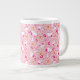 Caneca De Café Grande Padrão de Corações Rosa Snoopy & Woodstock