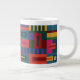 A alguns passos de desfrutar de uma grande xícara de cacau nesta caneca jumbo com um padrão colorido de colcha de madeira.