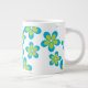 Caneca De Café Grande Padrão De Flores, Flores Azuis, Flores Verdes