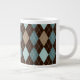 Caneca De Café Grande Padrão de Moda Azul e Escuro de Argyle