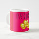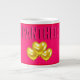 Meu design apresenta um fundo rosa vibrante com texto em uma mistura de rosa e preto, complementado por bordas brancas. Três corações de ouro na parte inferior são conectados por cordas finas de ouro, adicionando um toque de elegância à composição geral.