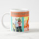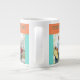 50º Aniversário, caneca de fotos personalizada. O modelo de foto é configurado para você adicionar 4 de suas fotos favoritas. Você também pode adicionar sua mensagem personalizada, o ano e editar a ocasião, se desejar. A redação atual diz "Parabéns no 50º aniversário" e "desejamos-lhe um ano de felicidade abundante" | [nome(s)] [ano]", todos eles personalizados. A caneca tem uma paleta colorida de turquesa, laranja e chaleira. Este design está disponível em várias cores - então você escolhe a cor que mais gosta e edita a idade de aniversário.