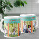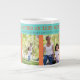60º Aniversário, caneca fotográfica personalizada. O modelo de foto é configurado para você adicionar 4 de suas fotos favoritas. Você também pode adicionar sua mensagem personalizada, o ano e editar a ocasião, se desejar. A redação atual diz "Parabéns no seu 60º aniversário" e "desejamos-lhe um ano de felicidade abundante | [nome(s)] [ano]", todos eles personalizados. A caneca tem uma paleta colorida de laranja, azul de turquesa e lacre. Este design está disponível em várias cores - então você escolhe a cor que mais gosta e edita a idade de aniversário.