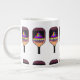 Beba café de uma caneca colorida com um design Pickleball. Estilo: Jumbo Alguns dias, uma xícara de joe de tamanho normal simplesmente não serve. Quando precisar de uma dose extra de cafeína, pegue a sua caneca de café extragrande de Zazzle. Vai acomodar um cheio de 20 onças de Venti. Perfeito para sopa, cereal, sorvete ou chili também! Esta caneca gigante apresenta uma alça em forma de C para um corte confortável. Dimensões: 20 onças: 3,9" D x 4,5" H Micro-ondas e lavadora de louças segura Forte, construção cerâmica Satisfaz os requisitos do FDA para segurança de comidas e bebidas Impresso a pedido em Reno, NV
