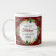 Caneca De Café Grande Primeira Tia de Natal Foto Holly Pine Cones Dourad
