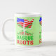 Mapa dos EUA com bandeiras do País Basco e norte-americanos se misturaram com o texto Basco Roots em vermelho e verde.