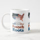 Um mapa dos EUA com as bandeiras da França e da América e o texto "Raízes Francesas" por baixo. Excelente para os americanos orgulhosos de sua ancestralidade francesa e para ex-pais.