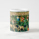 Coffee Mug apresentando a tapeçaria de William Morris Verprocedure com Deer and Shields (1891-1894). Uma cena de bebendo de veados de uma piscina de água e comendo de folhas de árvores em uma floresta verde. Acima deles pendura os escudos dos Cavaleiros da Mesa redonda. Um presente magnífico para os entusiastas de Arthuriana e colecionadores vitorianos de arte.