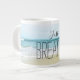 Linda praia arenosa, ondas azuis e céu sábio com as palavras "apenas respirar". Paraíso!