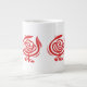 Rosa vermelha: simbolizando beleza, romance e sofisticação. Suas pétalas podem ser ilustradas com detalhes refinados, capturando a delicada natureza da flor, talvez com estilo clássico ou vintage, mostrando uma bebida calorosa e calorosa. A xícara pode ter padrões sutis ou dourada para melhorar seu charme.