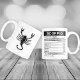 A caneca de café Scorpio com Fatos Nutricionais na parte de trás - pode personalizar todos os elementos. Excelente para pessoas de sinais Scorpio zodiac.