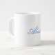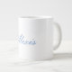 Caneca De Café Grande Script de Caligrafia Simples Azul Branco Simples