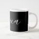 Caneca De Café Grande Seu nome | Script branco elegante em preto