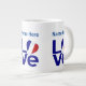 Esta caneca de café gigante ou jumbo personalizada apresenta a palavra "AMOR" em letras azuis, com uma bandeira francesa em forma de coração como "O". Design nos três lados. É um presente de excelente para Dia de os pais, Dia de as mães ou comemorações do Dia da Bastilha. Perfeito para reuniões de amigos ou familiares, também faz um legal Natal ou presente de Chanucá.
