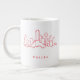 Este design apresenta um desenho desenhado à mão do horizonte de Dallas em Burgundy.