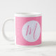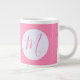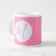 Feminine pink and white design in the squiggly squares fractal. Add an initial for personalization or the perfect gift. Jumbo or giant coffee mug makes a lovely gift for her home office or housewarming.