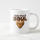 Specialty Mug apresenta a frase "ALIMENTE SUA ALMA" com a palavra "SOUL" realçada em uma fonte laranja clara, grande e em negrito que sobrepõe ligeiramente o texto "ALIMENTE SEU SOL". Abaixo deste texto está uma imagem de um pão em forma de coração, com a palavra "PRAYER" escrita sobre o pão a uma cor castanha escura, parecida com a textura e a cor da crosta assada.