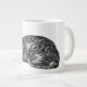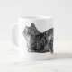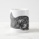 Uma mesa de pata rasgada com patas e orelhas atadas, virada para a frente. A textura macia do ponto dá um impressão clássico em preto e branco. Uma picada quente para as manhãs de inverno e amigos apaixonados por gatos.